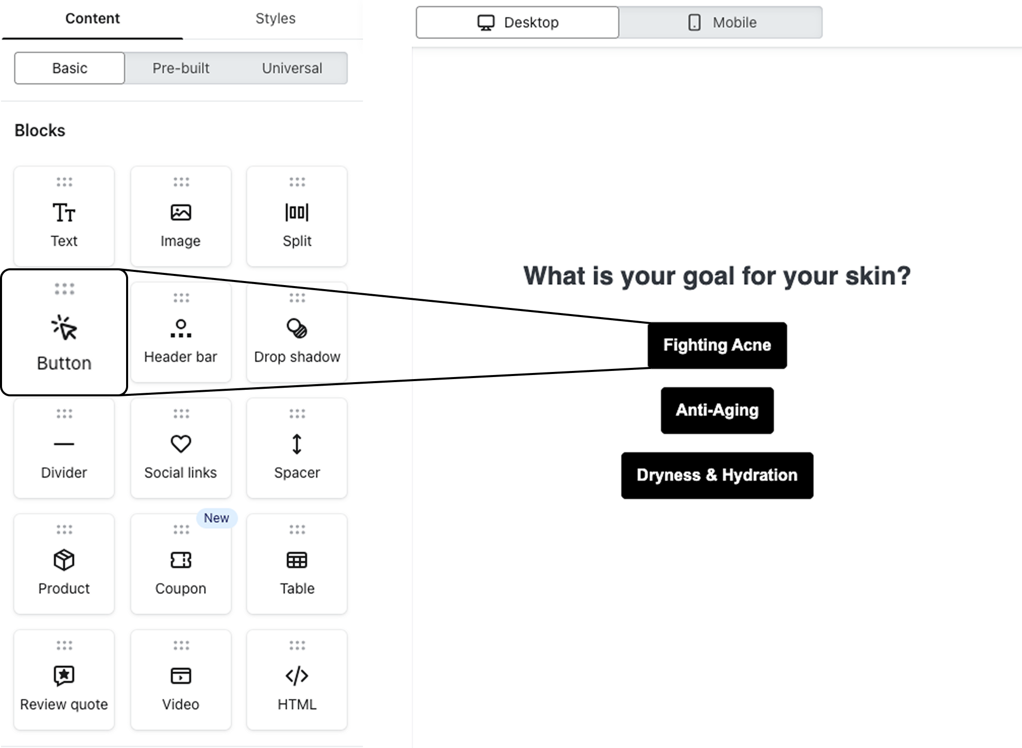 Once a user clicks "Anti-Aging," two things should happen immediately: